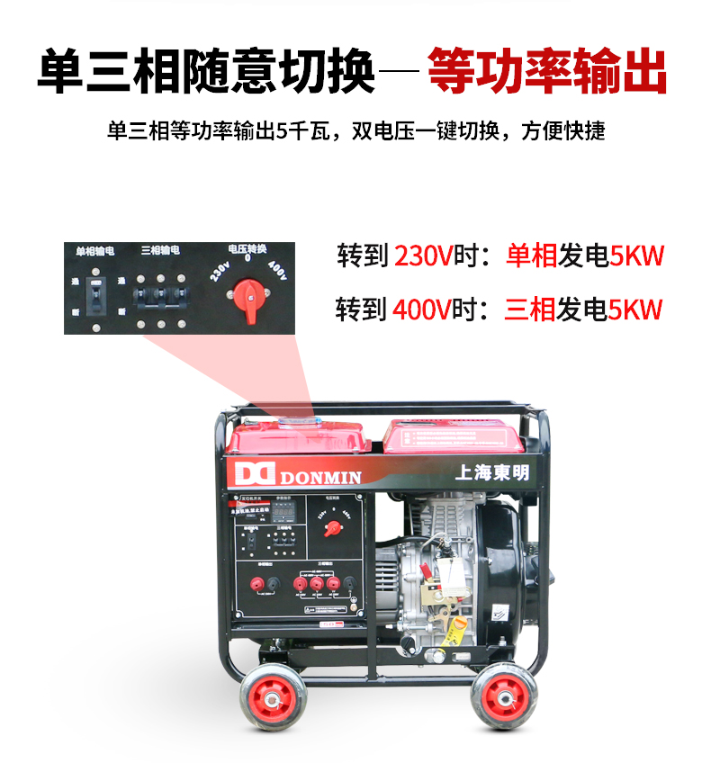 上海東明5KW單三相一體小型柴油發(fā)電機組 DMDS6500LE