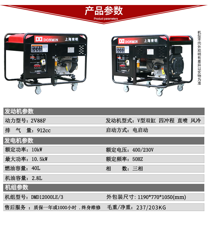 上海東明10KW /10千瓦DMD12000LE/3 三相小型柴油發電機組