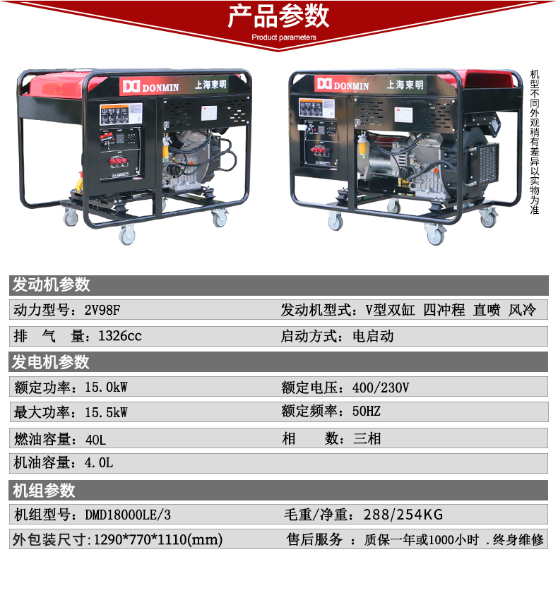 上海東明15KW 15000W柴油發(fā)電機組DMD18000LE/3