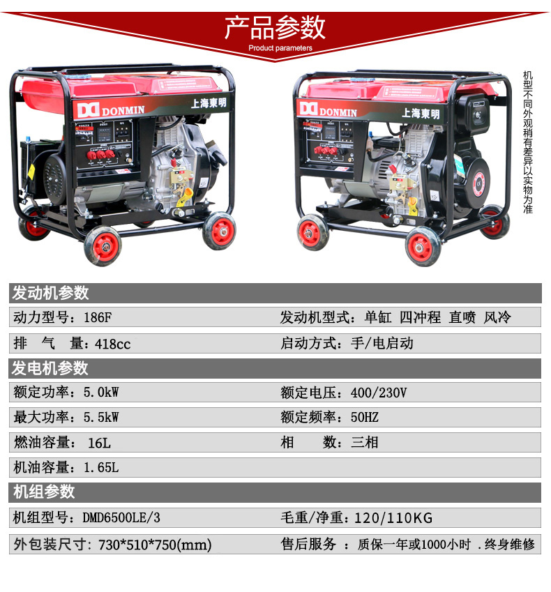 380V 三相5000瓦小型柴油發電機組 DMD6500LE/3