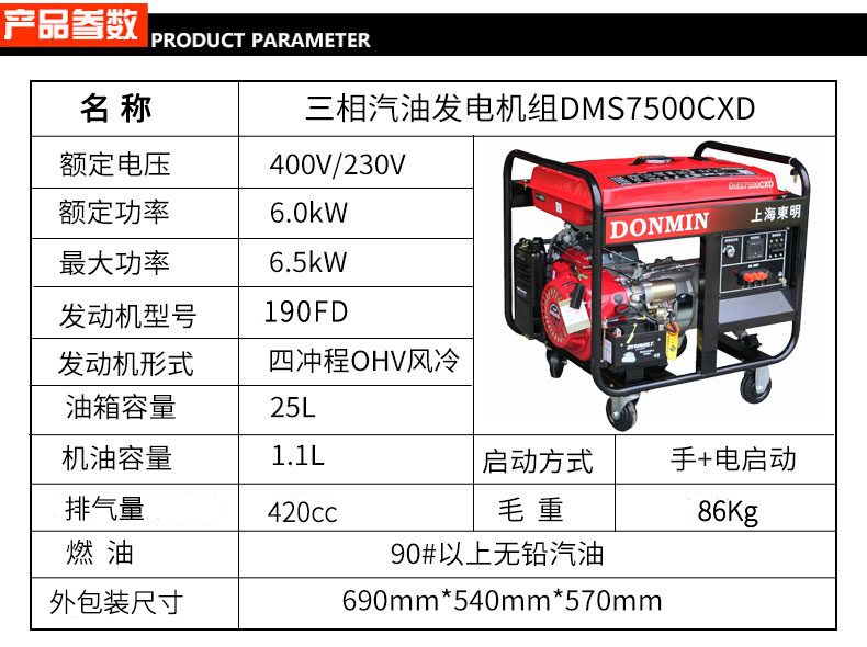 三相6kW汽油發(fā)電機(jī) DMS7500CXD電動(dòng)