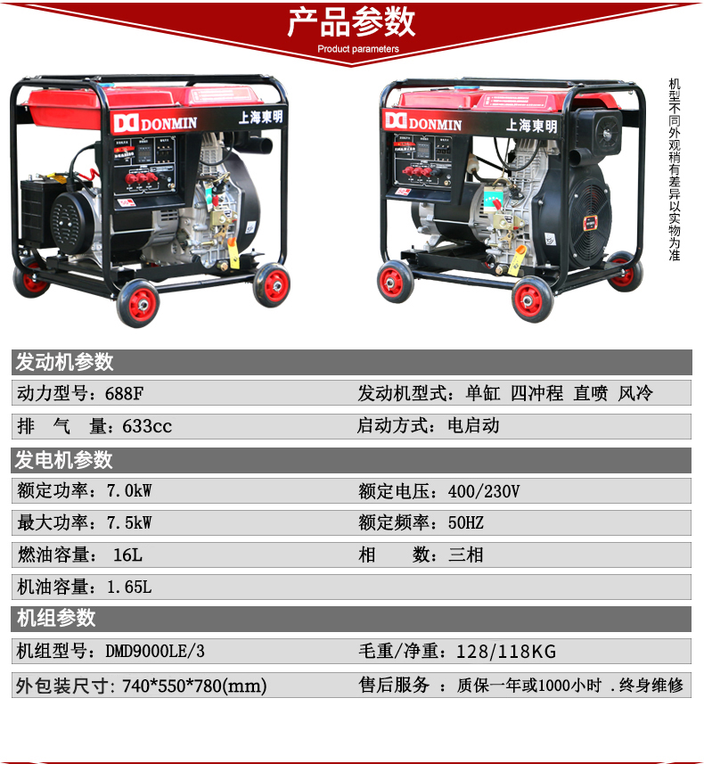 上海東明7KW / 7千瓦DMD9000LE/3 三相小型柴油發電機組