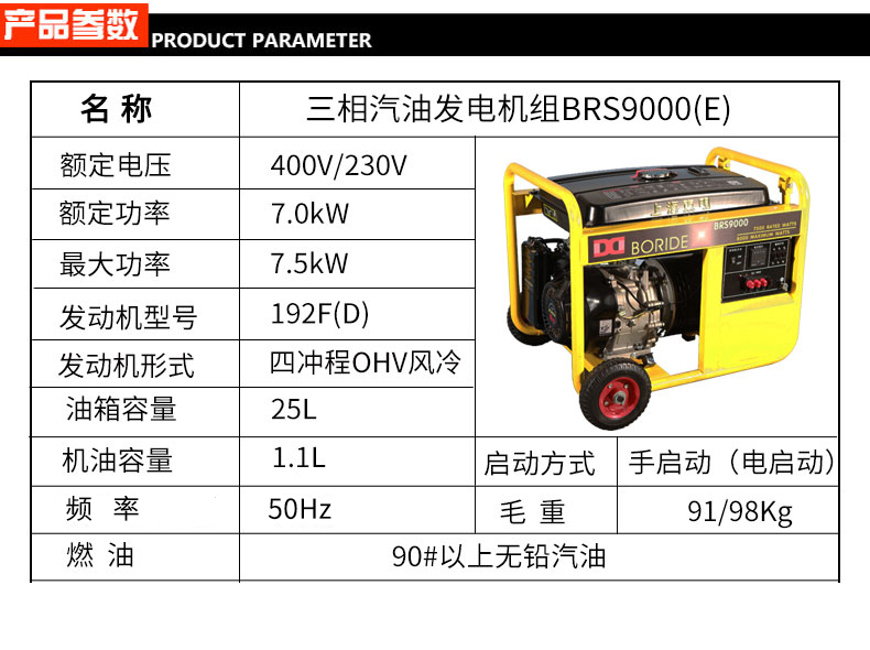 三相7kW小型汽油發(fā)電機(jī)組 BRS9000(E)